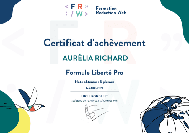 Mais avant de me lancer pour de bon, syndrome de l’imposteur oblige, je me forme à la rédaction Web SEO, début 2022, auprès de l’organisme FRW de Lucie Rondelet…